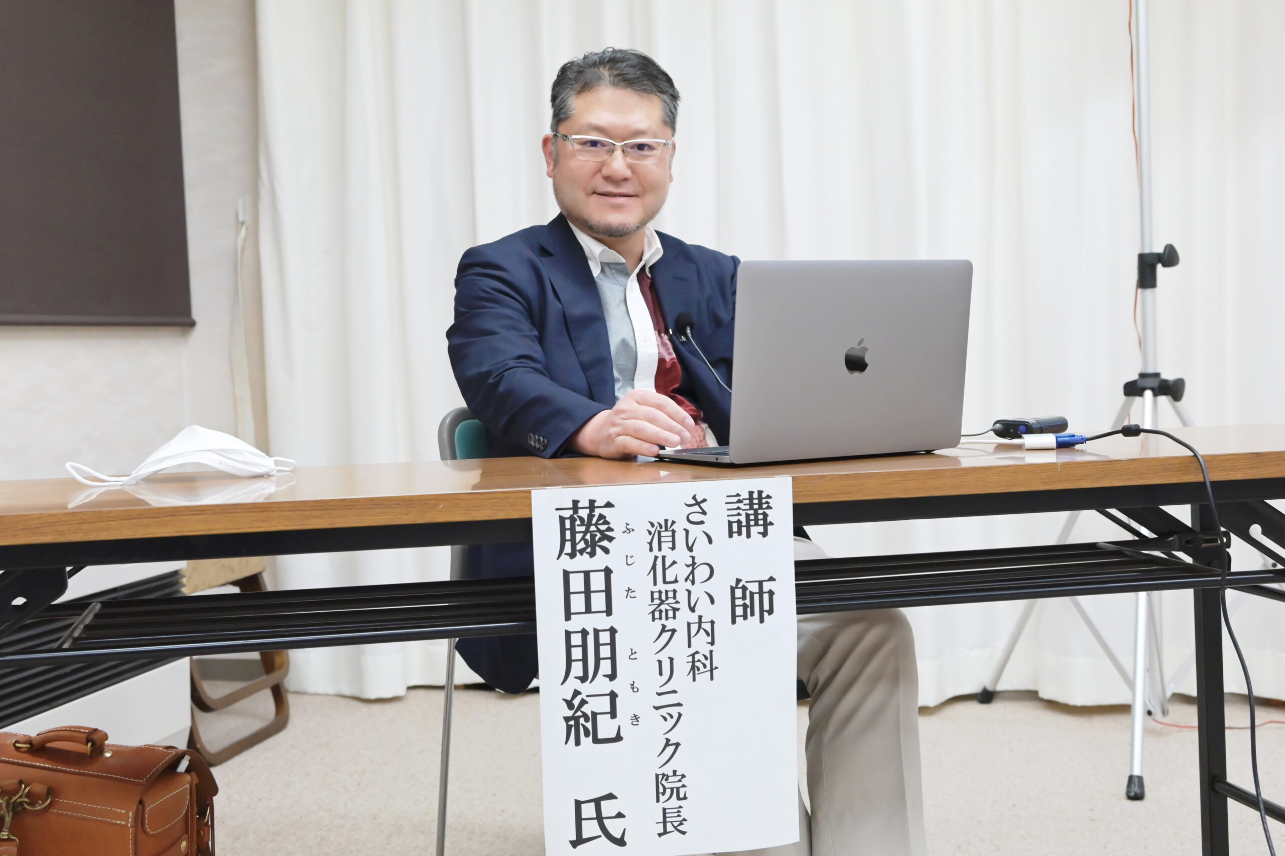 報告2025 9.25.第7回全久寺講演会のご報告 報告 2025.09.30 9月25日(木)午後6時より全久寺法輪閣ホールにおいて第7回全久寺講演会を開催いたしました。 講師にさいわい内科消化器クリニックの藤田朋紀医院長をお迎えし、「胸やけ・胃もたれ・胃の痛み 胃と腸のお悩み解決!」と題して大変参考になるご講演をいただきました。夜分にもかかわらず会場には町内外より60名以上の参加者が詰めかけ、興味深い講師のお話しに耳を傾けられました。
