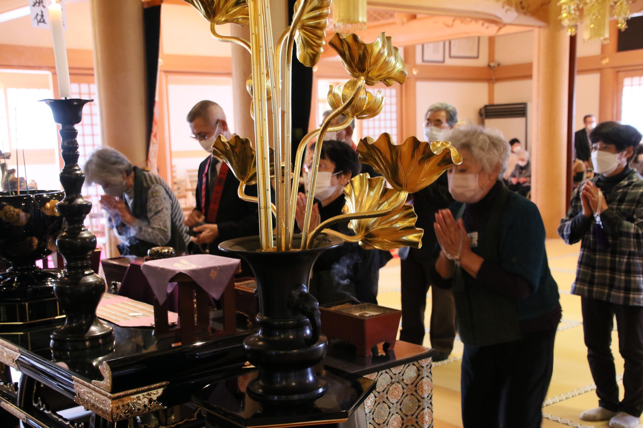 本年最後の法要である成道会法要に合わせて、納骨堂で合同供養を行います。納骨壇保有者はもちろん参詣者全員にお焼香をしていただきます。